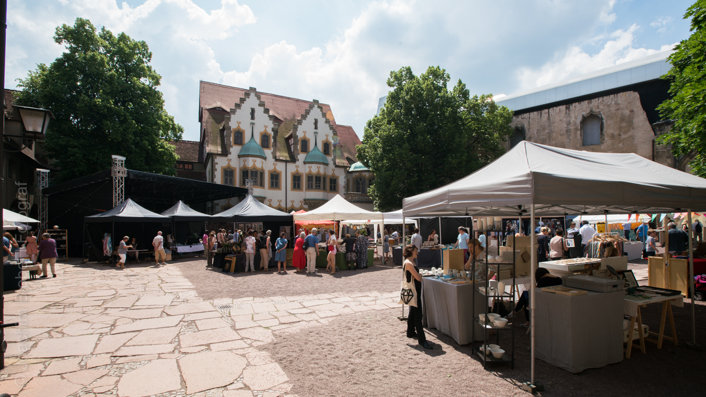 Kunst und designmarkt im hof der moritzburg am wochenende.
