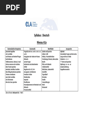 Syllabus Deutsch Stufe A1a Sprachhandlungen Atti